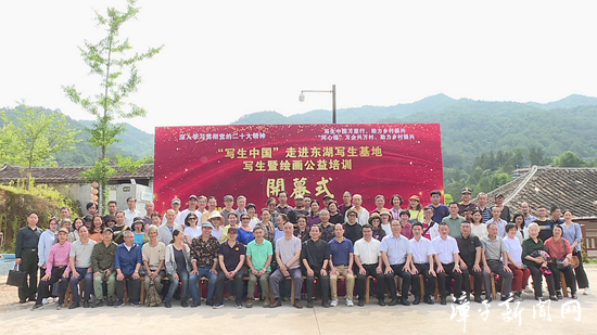 开幕式上,举行了写生中国——中国油画写生俱乐部写生基地授牌仪式。此次采风写生活动为期十天,画家们将以东湖村为写生重点,感受东湖古村落厚重的历史文化底蕴,在温婉秀丽的自然美景、古色古香的人文景观里寻找创作灵感。写生现场,画家们以画为媒,勾勒出一幅幅东湖美景,绘出乡村新画卷。