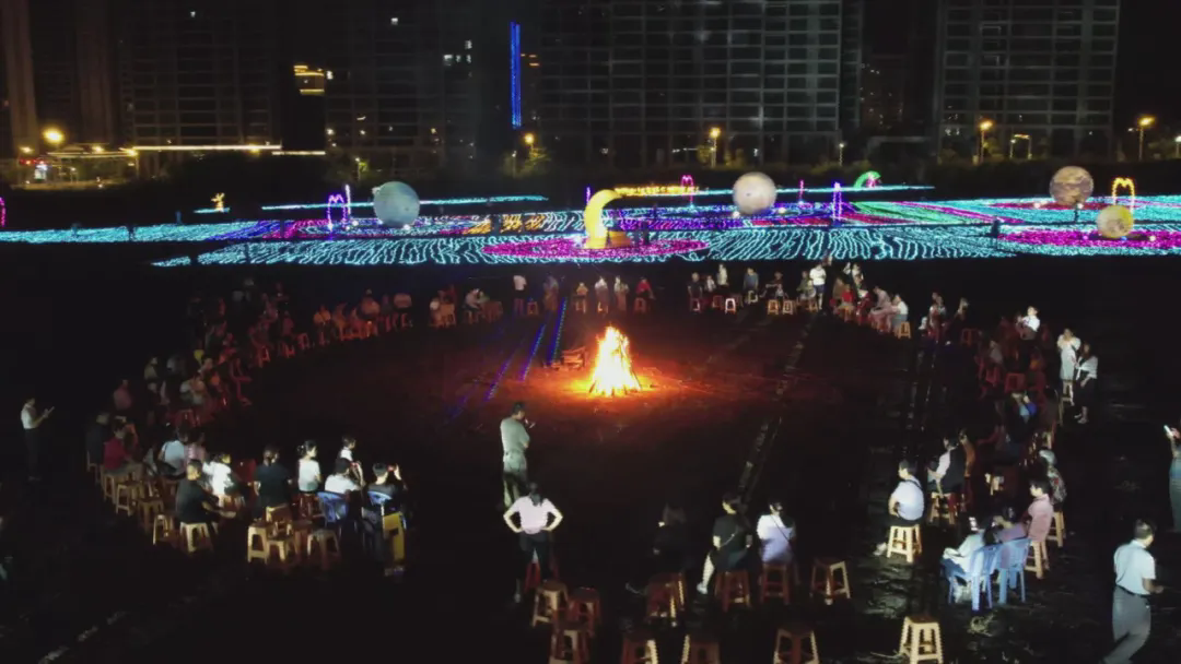 活动现场,百万盏彩灯交织,灯光如同梦幻之笔,在大地上勾勒出一幅奇妙的画卷。随着篝火的点燃,将晚会气氛推向了高潮,伴随着红色的火焰升腾而起,游客们手挽手、肩并肩,围着篝火,跳起了欢快的舞蹈。除了篝火晚会,打火壶、歌舞表演、烟花瀑布秀等精彩环节轮番上演,令人目不暇接。