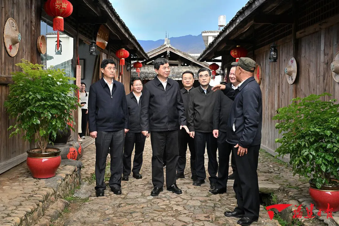 红土地孕育了厚重的红色文化。位于长汀和连城交界处的松毛岭重峦叠嶂、地势险要,90年前的松毛岭之战为中央红军主力长征赢得了宝贵时间。周祖翼一行冒着细雨拾级而上,在松毛岭战斗烈士纪念碑前整齐肃立,敬献花篮。周祖翼走上前整理花篮上的缎带,带领大家向烈士纪念碑三鞠躬,并缓步绕行纪念碑一周,向革命先辈致以深切的崇敬与缅怀。松毛岭下的中复村有“红军长征第一村”之称。周祖翼沿着古街察看了村里的红军桥、红军街和松毛岭战役指挥部旧址、红九军团陈列馆等,关注长征国家文化公园项目建设情况,共同重温那段艰苦卓绝的革命历程,感受军民团结一心的鱼水深情。在连城县庙前镇庙上村,周祖翼走进中央苏区医史馆—采陔公祠、江一真陈列馆,详细询问了解红色文化资源挖掘阐释、传统村落保护利用、文旅项目开发等工作,叮嘱当地要赓续红色血脉,传承良好家风、培育文明乡风,展现美丽乡村新气象。在连城县朋口镇文坊村,周祖翼参观了项南同志生平事迹展陈,认真听取工作人员讲解,通过珍贵的历史照片、文献和展品,感悟项南同志的“长者风范、公仆榜样”。周祖翼说,我们要弘扬党的光荣传统和优良作风,牢记初心使命,坚定理想信念,践行党的宗旨,为实现人民对美好生活的向往不懈努力。