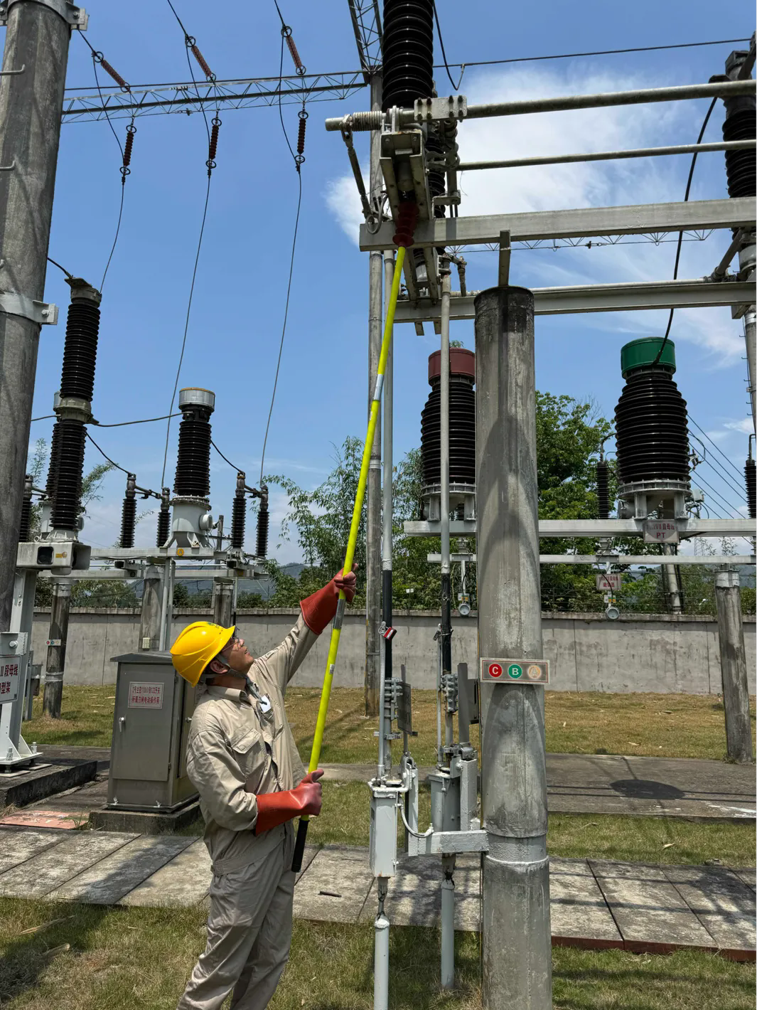 若采用传统消缺方式将给周边的大多数居民、企业用电带来不便,经值班人员反复观看视频监控画面,认真分析讨论及现场勘查后,最终制定了使用地电位绝缘操作杆进行消缺的方案。在做好各项安全措施后,值班人员用绝缘操作杆小心地将异物勾下,成功处理隐患。