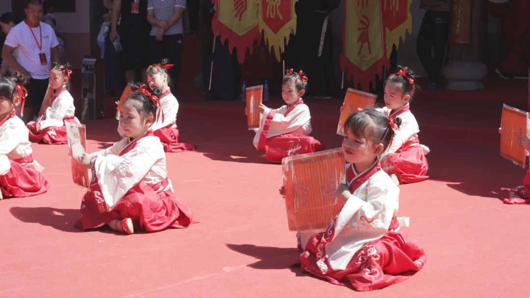 典礼在赞礼官“师道永存,斯文永昌”的宣告中礼成。随后,为溪南中心小学40名学童完成了朱砂启智与开笔破蒙,并组织溪南中学学生齐诵《论语》经典段落。