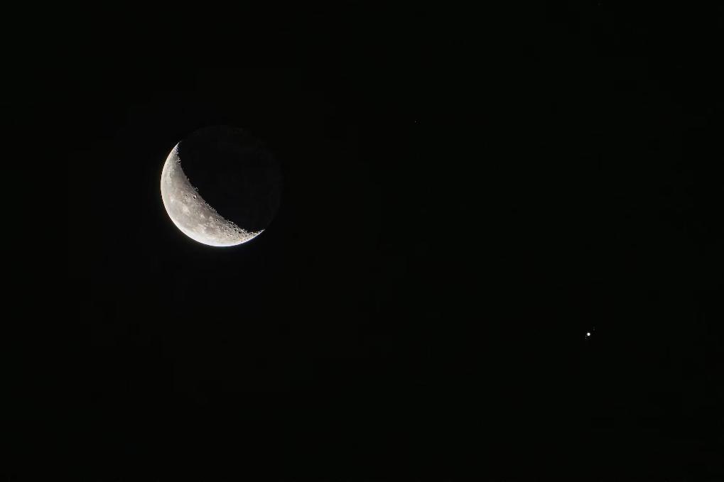 2023年12月22日,在天津西青区拍摄的木星伴月。(刘庆 摄)