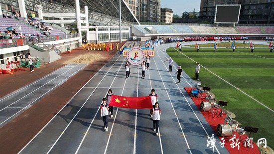 开幕式现场氛围热烈,城关小学、附小、城北小学学生先后带来《鼓乐齐鸣 龙狮送福》非遗展示、《灯火里的中国》舞蹈与《精忠报国》功夫扇表演,用鲜活的演绎展现传统民俗魅力与青少年的青春活力。随后,国旗方阵引领入场式,会徽标语队、花束方阵、各参赛代表队及裁判员依次亮相,在《义勇军进行曲》的激昂旋律中,赛事正式开启。