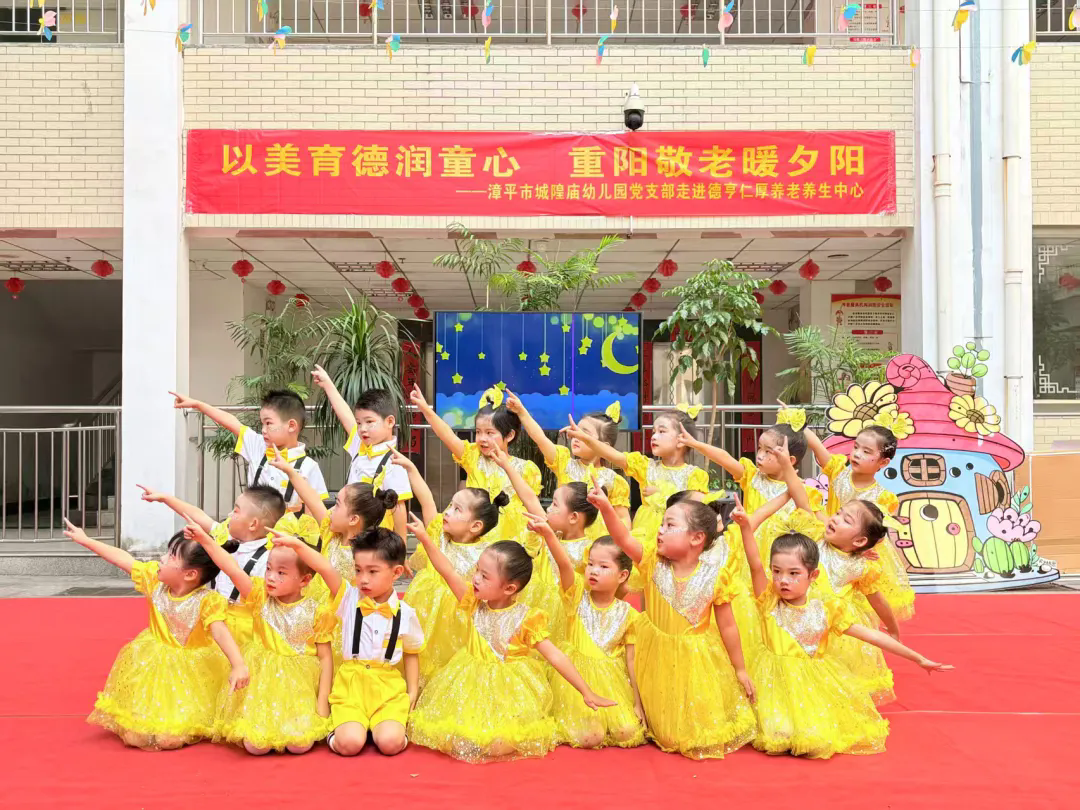 近日,漳平市德亨仁厚养老养生中心迎来了一群特殊的“小客人”——漳平市城隍庙幼儿园的60名大班幼儿,在5名党员教师、10名普通教师、1名保健医生及10名家长志愿者的带领下,孩子们将精心准备的“美育课堂”搬进了养老院,为老人们送去秋日里最温暖的问候与欢笑。
