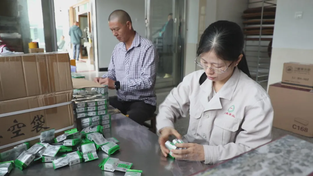 近日,记者走进南洋镇九鹏茶叶有限公司的标准化厂房,机器运转声不绝于耳,工人们正在流水线上忙着烘焙、包装茶叶;一旁的电商运营中心里,一箱箱水仙茶整齐码放,整装待发,即将发往全国各地。在包装车间,北寮村村民王清英动作娴熟地操作机器,将封装好的水仙茶打包,脸上洋溢着踏实忙碌的笑容。
