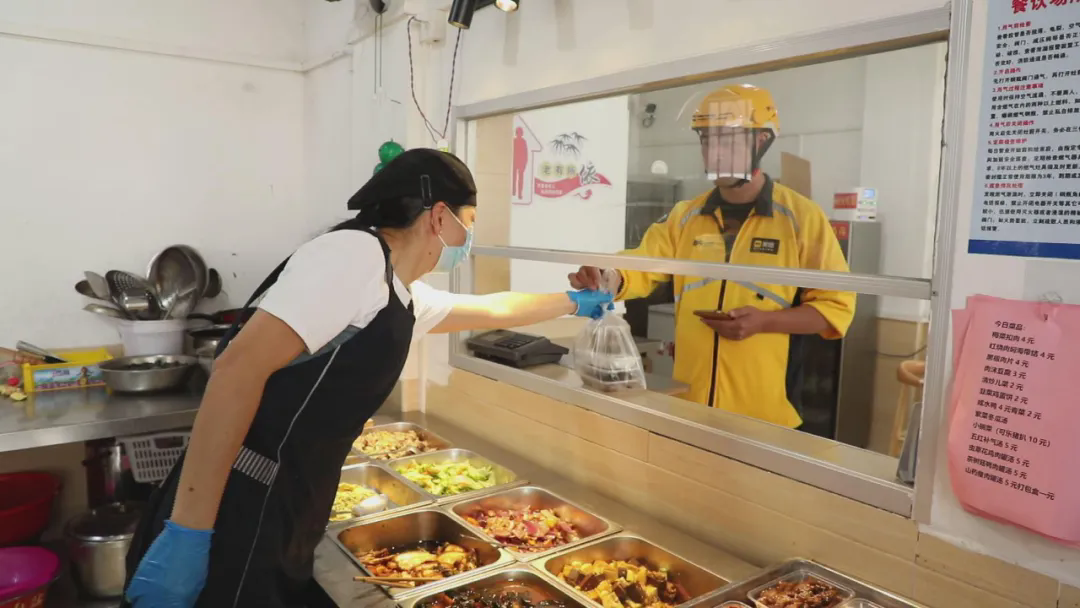 走进富山社区长者食堂,刚出锅的荤素搭配饭菜香气扑鼻。工作人员迅速将热餐打包好,逐一交给网约配送员。配送员有序领取后,便马不停蹄地赶往社区老人家中,确保老人能吃上香喷喷的饭菜。