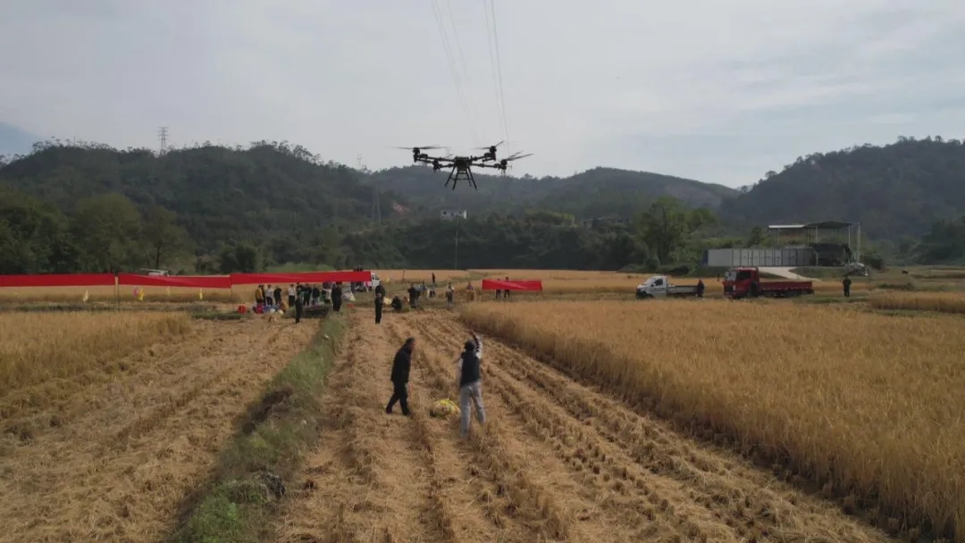 金色稻田里,农机轰鸣作响、无人机穿梭忙碌,一派繁忙有序的景象。现场,收割机技术人员紧扣丘陵山区作业特点,围绕小型收割机开展实操培训,指导农机手调试机具、掌握核心操作要领;12 名农机手聚焦损失率、割茬高度等关键指标展开技能比拼,娴熟的操作手法展现了过硬的专业本领。与此同时,无人机吊运作业同步亮相,灵活高效完成稻谷转运,成为现场一道亮眼的风景线。