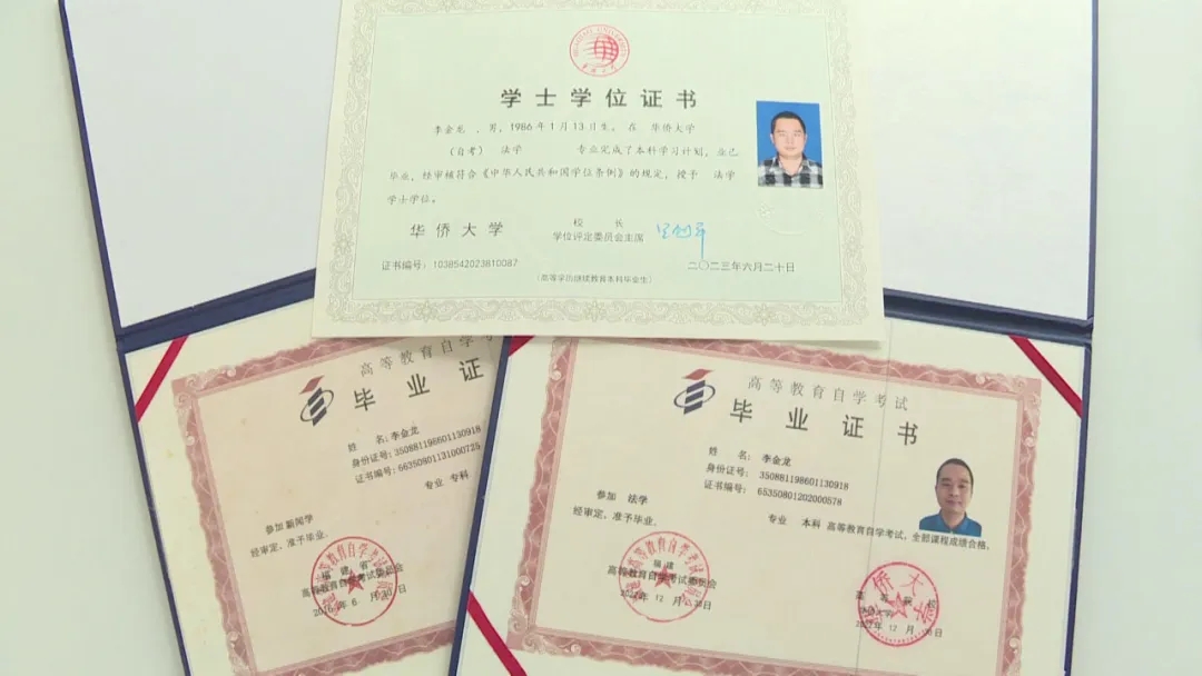 正是这份执拗,让他跨越身体障碍,先后斩获福建师范大学新闻学大专文凭、华侨大学法律专业本科学位。学业突破后,体育赛场成为李金龙的新舞台。偶然接触跆拳道后,李金龙便被这项充满力量的运动深深吸引。但肢体的残缺让他的训练之路布满荆棘,没有双臂维持平衡,他便专攻腰部与腿部力量,反复打磨动作细节,训练服浸透了汗水、身上新伤叠旧伤成为常态。