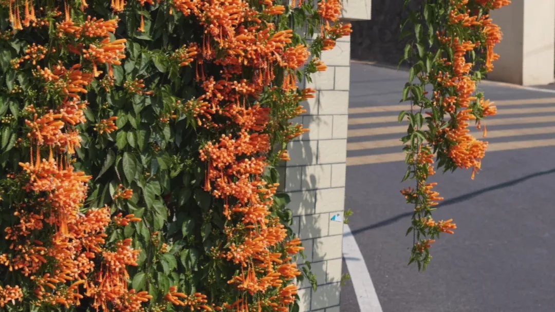 炮仗花又名爆竹花、吉祥草,盛放时每株着花可达上千朵,寓意红红火火、富贵吉祥。作为东坑口村道绿化优选植物,这抹绚烂花景不仅扮靓乡村,更成为村民家门口的“幸福景观”。
