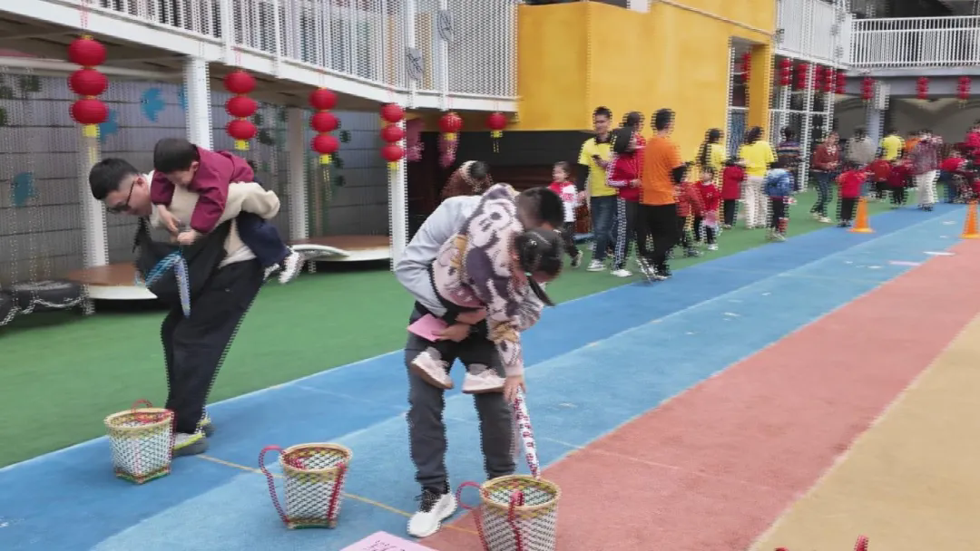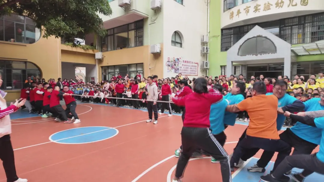 亲子运动环节亮点纷呈,“骑”乐无穷、搭桥过河、“滚滚福气来”等十余项趣味项目轮番上演。家长竞技环节同样精彩,拔河比赛中,各年段家长代表队齐心协力、奋力比拼,场外呐喊声此起彼伏。最后的抢零食大战将活动推向高潮,现场满是节日氛围与温情。