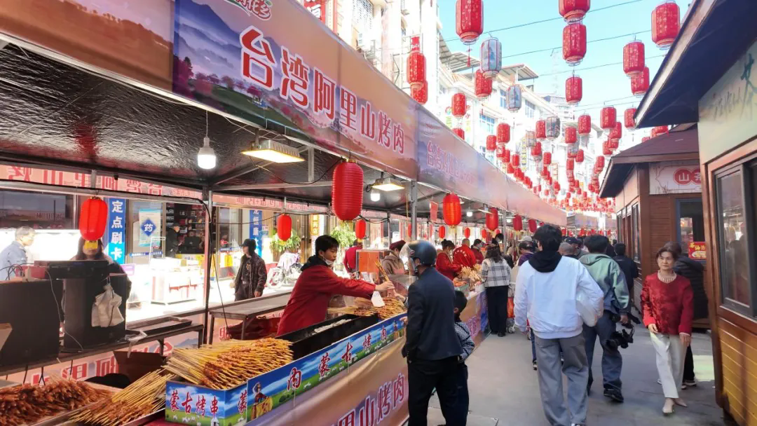 除了台湾特色,现场还汇聚闽南古早风味与全国各地特色小吃。热气腾腾的面线糊,饱满弹牙的鱼丸,传递着熟悉的闽南记忆;而新疆烤肉、陕西肉夹馍等来自大江南北的美食也齐聚于此,让这条台湾街飘起“全国味道”。