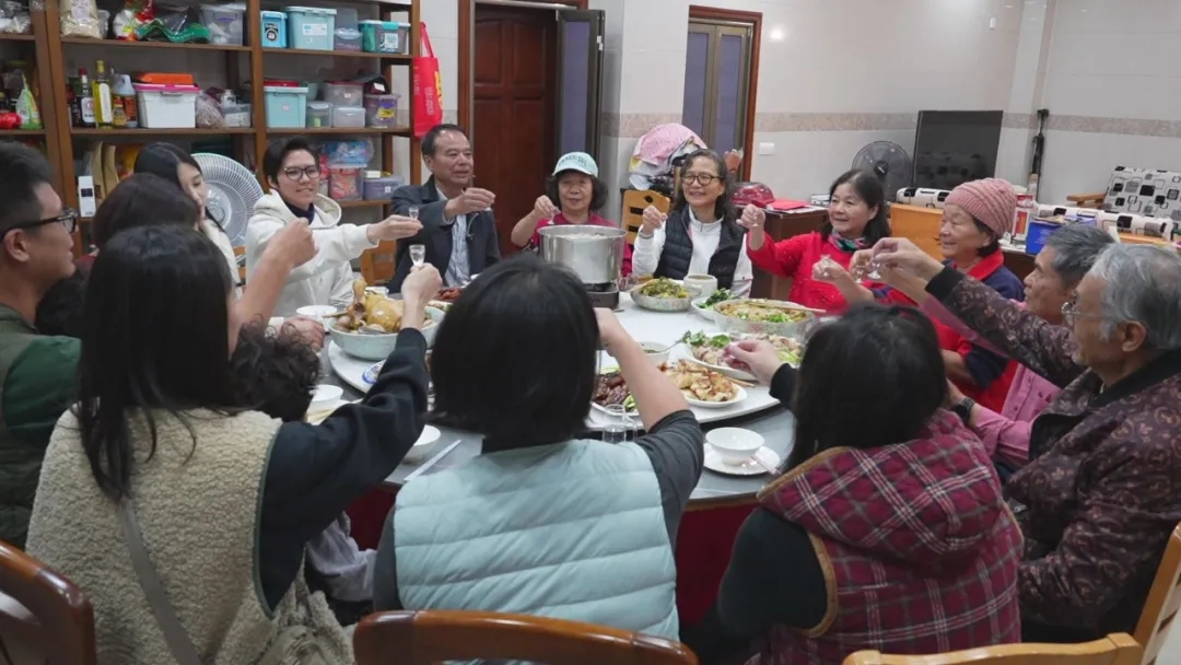 夜幕降临,谢东庆家中暖意融融。一桌丰盛的团圆饭,既有漳平特色的笋干、芥菜,也有台湾风味的焢肉、香肠,两岸风味相融,寓意着阖家团圆、血脉相连。品尝美食之余,谢东庆提议大家齐声唱起经典的《爱拼才会赢》,熟悉的旋律在屋内回荡,唱出了两岸同胞拼搏奋进的共同心声。