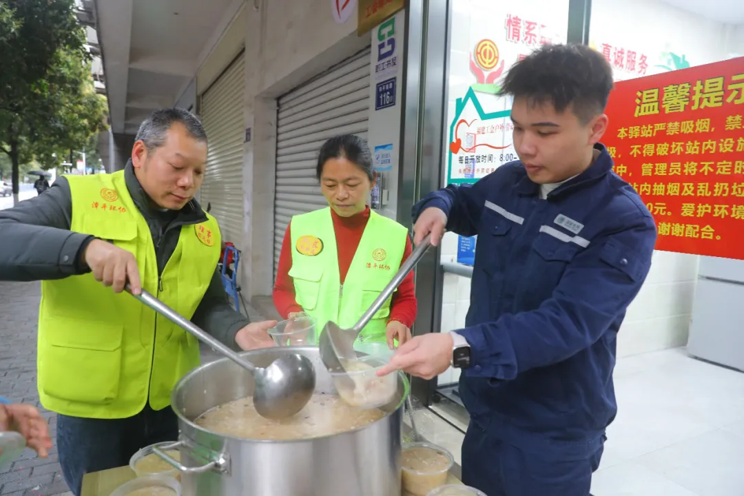 近年来,该公司依托工会驿站阵地,持续为环卫工人、快递员、外卖骑手等户外劳动者提供休憩、饮水、充电、应急药品等便民服务,常态化开展关爱慰问活动,把温暖送到劳动者身边。此次活动是国网漳平市供电公司与漳平市总工会开展共建活动,践行企业社会责任、深化为民办实事项目的具体举措之一,不仅填饱环卫工人的肚子,更温暖了他们的心灵。