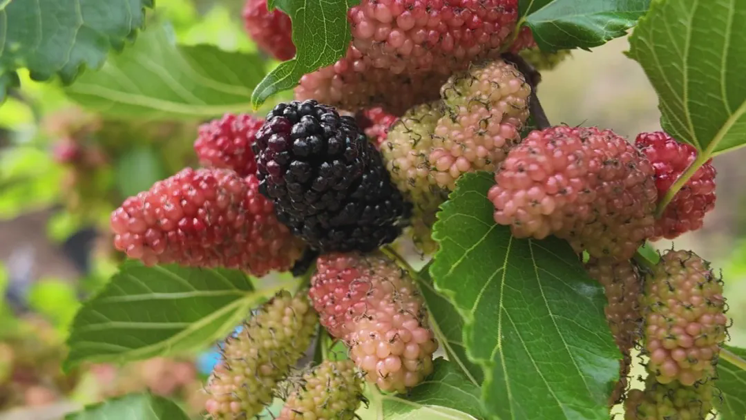 园内既有从台湾引进的品种,也有本地桑葚与野莓风味桑葚,口味多样。