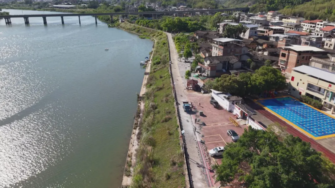 在项目施工现场,处处呈现热火朝天的建设景象。工人们各司其职、有序作业,从苗木栽种到景观搭建,从步道改造到公园修缮,每一项工程都在稳步落地。在占地7.2亩的桂花柚优种育苗基地内,错落有致的苗木已扎根沃土,炮仗花公园的“心”型景观框架初见雏形,成为乡村一道别致的风景线。江滨公园1100米提升改造项目也进入最后收尾阶段,步道拓宽工程已基本完成,工人们正专注细化细节,全力做好地砖铺设等收尾工作。整体项目预计本月底完工。